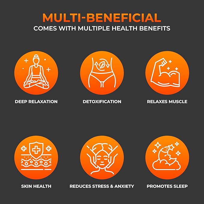 Elimina toxinas y mejora la circulación sanguínea. ✅ Relaja los músculos y alivia el estrés diario. ✅ Hidrata y revitaliza la piel, dejándola más suave y luminosa. ✅ Ayuda a la pérdida de peso al promover la sudoración intensa. ✅ Mejora la calidad del sueño y reduce la fatiga corporal.