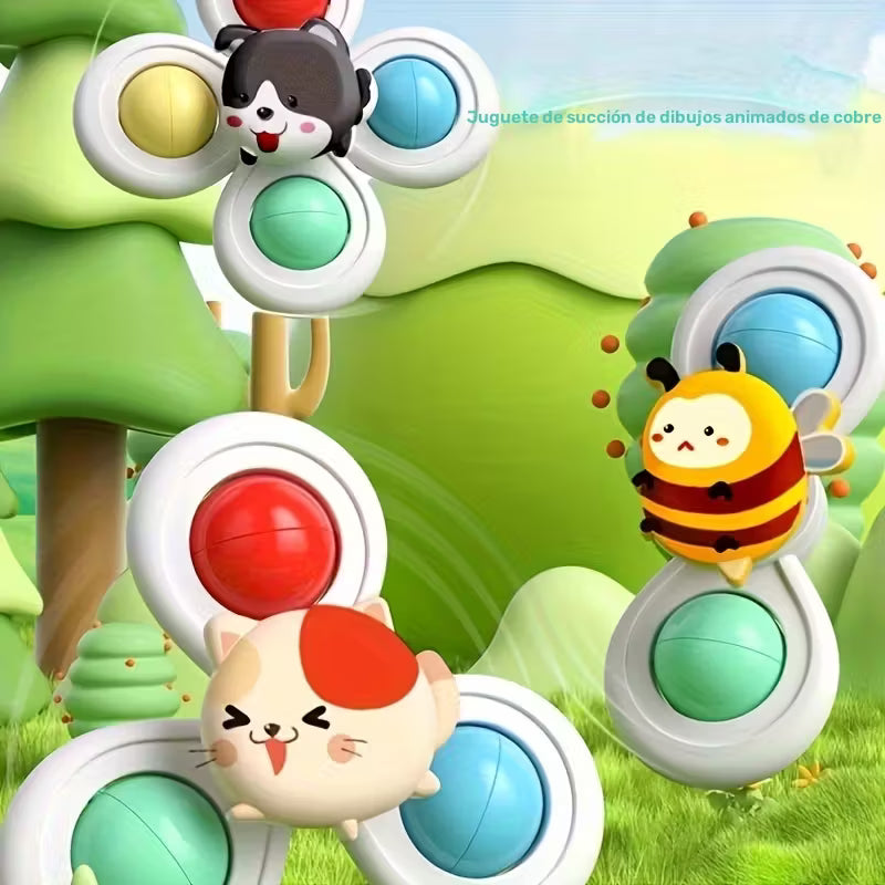 3-Pack de Trompos de Succión de Caricaturas para Bebés 🎨👶 | Sonajeros Educativos, Aprendizaje Temprano y Juguetes de Torsión Apilables
