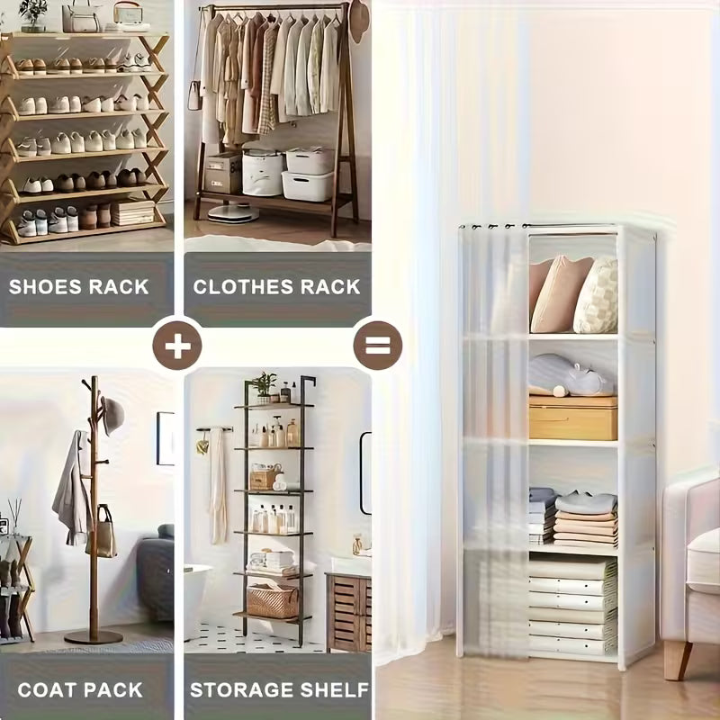 ✨🚪 Armario de 4 Niveles con Barra para Colgar 🧥📦 | Organizador Independiente, Fácil de Montar y Ahorra Espacio ✨