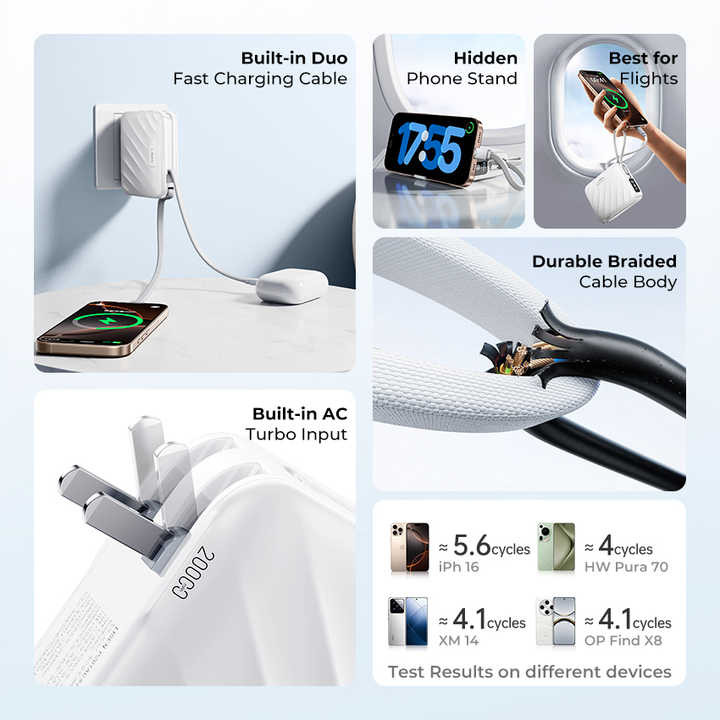 Este banco de energía portátil multifunción con cables retráctiles y cargador de pared plegable es todo lo que necesitas para mantener tus dispositivos activos en cualquier momento y lugar.