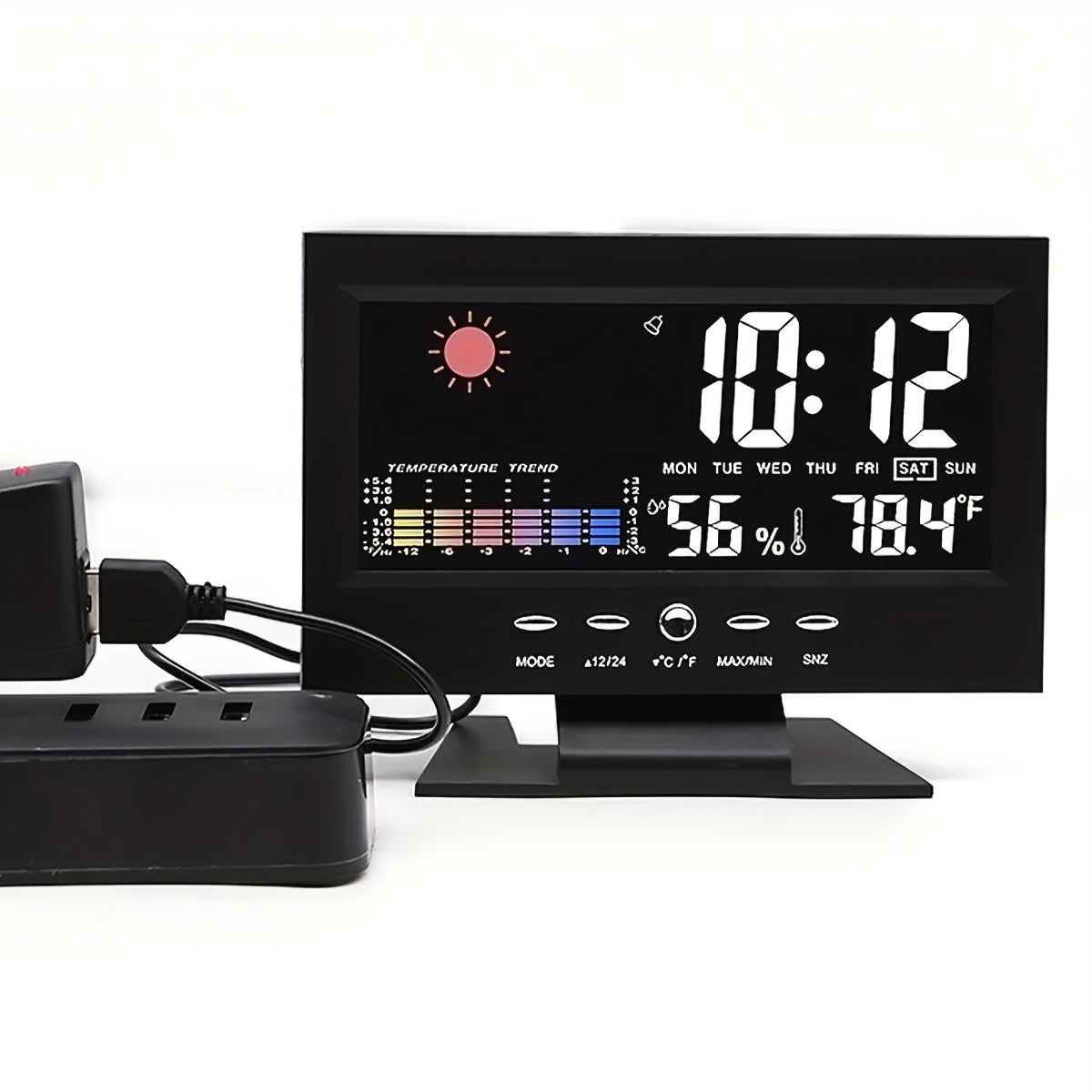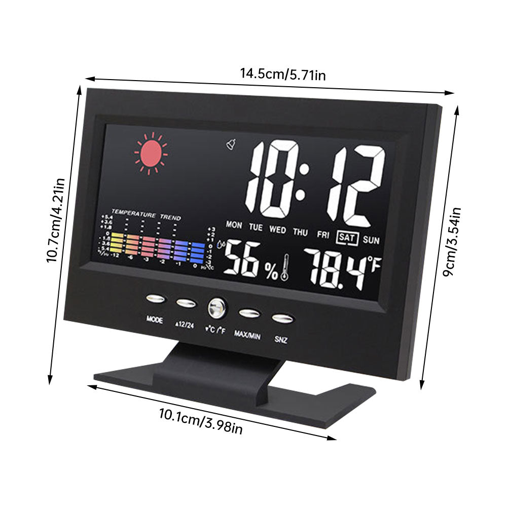 El termómetro y higrómetro integrados 🌡️💧 permiten monitorizar la temperatura y la humedad en tiempo real, ayudándote a mantener un ambiente saludable y confortable, especialmente en temporadas de cambios climáticos 🌦️🍃. Además, su reloj con alarma ⏰ y calendario incorporado 📅 facilitan la organización diaria, convirtiéndola en una herramienta práctica para el hogar u oficina 🧠📊.