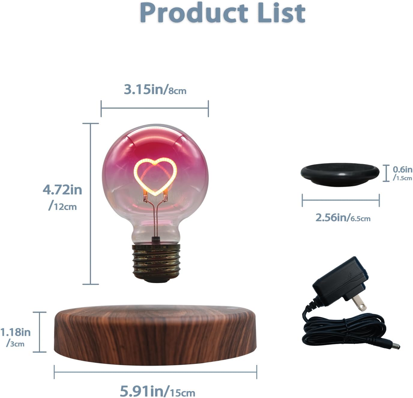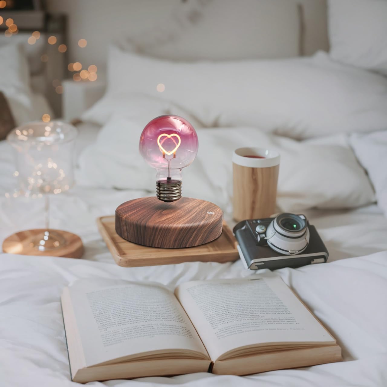 Bombilla de corazón flotante de levitación magnética con lámpara de mesa con base de madera recargable USB para decoración de cabecera de dormitorio dropshipping