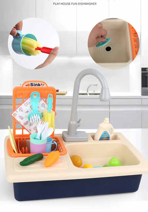 Juego de fregadero de cocina de lavado de simulación, juguetes de cocina, juguetes de corte para lavavajillas, mejora la sabiduría de los niños, mejora el pensamiento espacial
