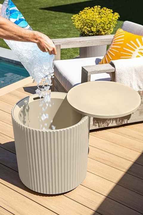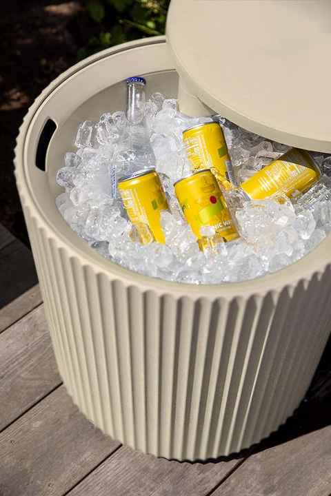 ¡Olvídate de correr a la nevera! Con esta innovadora mesa auxiliar con enfriador integrado, tendrás tus bebidas frías siempre al alcance, sin salir del jardín, la terraza o la piscina 🏖️❄️.