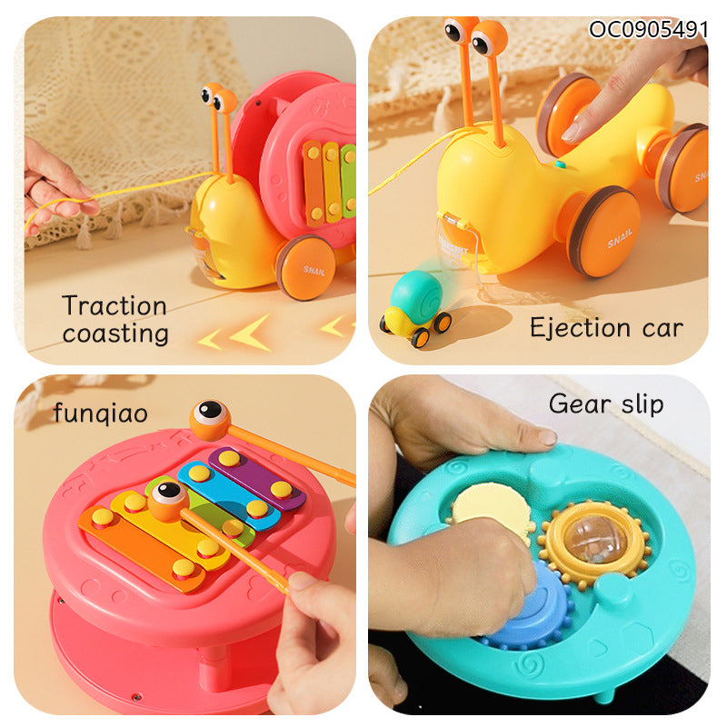 Este xilófono educativo con diseño de caracol es un juguete musical completo que combina instrumentos, movimiento y aprendizaje sensorial en un solo diseño divertido y colorido 🎶🐌🌈. Perfecto para bebés y niños pequeños, integra un xilófono metálico, un mini piano, engranajes giratorios y un carrito de arrastre, creando una experiencia interactiva llena de sonidos, colores y movimiento ✨👶🎼.