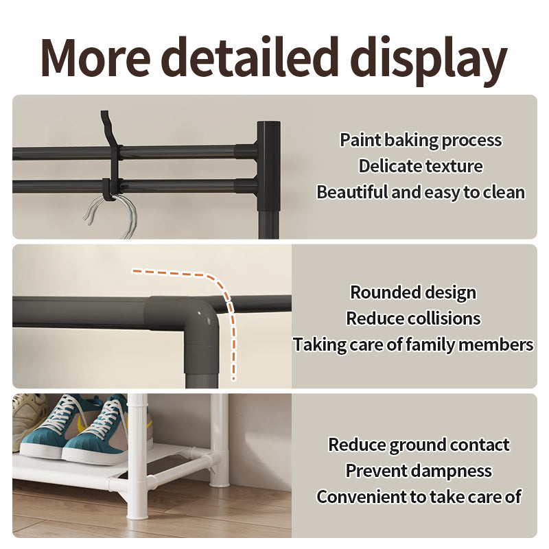 ✅ Diseño multifuncional: incluye ganchos laterales donde puedes colgar bolsos 👜, sombreros 🎩, paraguas ☔ o incluso correas de mascotas 🐾, optimizando aún más el espacio.