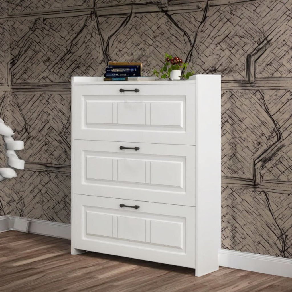 El sistema abatible facilita abrir y cerrar el compartimento con suavidad, ofreciendo un acceso cómodo y práctico 👟🔄. Su estructura de MDF resistente 🪵🛡️ garantiza estabilidad y durabilidad, mientras que su estética moderna combina fácilmente con diferentes estilos de decoración, desde minimalista hasta contemporáneo.